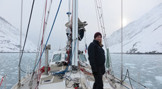 En effet, sur la carte électronique du capitaine, nous devrions être sur le glacier, celui-ci ayant considérablement reculé. Nous doublons deux îles non cartographiées. « Elles sont apparues récemment, il y a dix ans elles étaient sous le glacier emprisonnées par la glace, avec le retrait du glacier elles se sont découvertes » explique le capitaine. Laura décide de les nommer, Laura et Béti du nom de notre petit chien. La nuit est venue et avec elle la brume, nous déambulons dans le fjord, tel un vaisseau fantôme dont seul le reflet sur l’eau d’ébène parviendrait à nos yeux ébahis par tant de grâce.